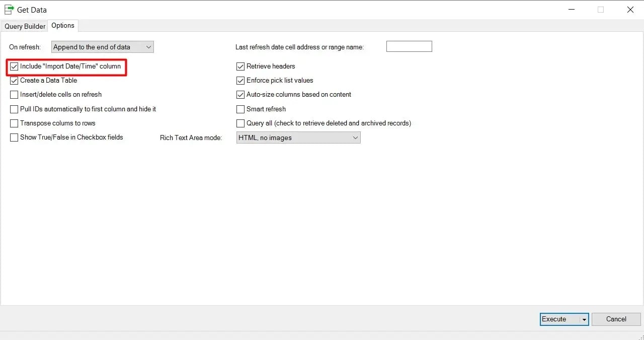 If you are pulling values from columns of ‘Pick list’ type in Salesforce, you have an option to create drop-down lists right inside of Excel in each row of the data for such columns. To enable this feature, you will need to check the ‘Enforce pick list values’ box in the Options tab of the Get Data dialog before running the query.